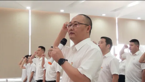 活動伊始,全體人員莊嚴肅立,齊聲高唱《中華人民共和國國歌》,激昂的旋律瞬間點燃了現(xiàn)場的熱烈氛圍,讓大家感受到了作為中華兒女的自豪與責任。隨后,在集團黨委書記的帶領下,全體黨員面向鮮紅的黨旗,重溫入黨誓詞。一句句鏗鏘有力的誓言,回蕩在整個會場,黨員們表達了對黨的無限忠誠和為共產主義事業(yè)奮斗終身的堅定決心 。